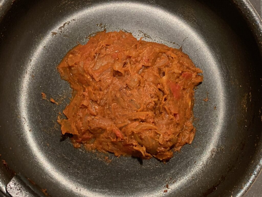 - 弱火にしてパウダースパイス練り込む